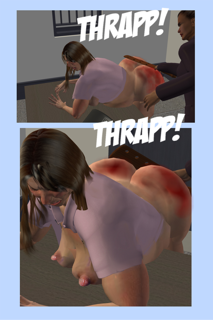 The story so far... plump middle aged milf Gloria, aka Porky, has spent five years of hell in jail, suffering daily spankings and worse at the hands of the inmates. Now she's being released. But the sadistic warden has promised Gloria one last and particularly hard thrashing, and she bends the fat mom over her desk...